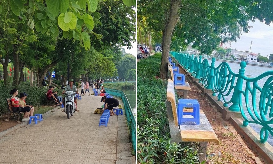 Bạn đã từng đến một công viên hay khu vực Hồ Tây ở Hà Nội và bắt gặp những cảnh ghế đá không có người ở, được thay thế bằng những chiếc ghế nhựa màu xanh và đỏ với các dự án? Đây là cách những người bán hàng rong cảnh báo người khác: “Chiếc ghế này là ghế của họ. Không ai được phép ngồi ở một nơi mà dịch vụ này không được sử dụng.” Nếu ai đó thực sự mệt mỏi và muốn dừng lại ở đó, có hai cách: một là gọi cho nhà hàng của họ với giá rẻ, nếu không thì tên ngốc sẽ mời bạn ngay lập tức “