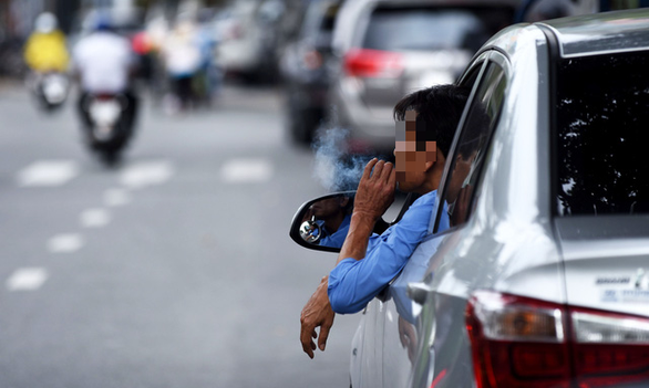 Cấm hút thuốc khi điều khiển xe máy, ô tô trên đường . Tôi đang đi xe máy, người ngồi trước hút thuốc khiến khói bốc ra từ mặt. Nhiều người đi xe đạp cầm điếu thuốc đã cháy dở trên tay khi đang hút. Hút thuốc lá có hại, vì vậy cần cấm hút thuốc nơi công cộng và trên đường, chỉ được phép hút thuốc trong phòng riêng, nơi được phép hút thuốc Có phòng hút thuốc trong quán cà phê, nhà hàng.